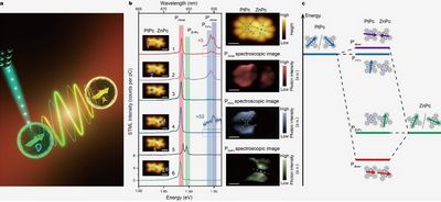 本报讯 6月6日,中国科大单分子科学团队利用自主发展的具有亚纳米空间分辨的电致荧光成像技术,以铂酞菁(能量供体)和锌酞菁分子(能量受体)为模型体系,通过STM操纵可控地改变供体-受体分子的间距与取向等结构特征,同时监控受体分子发光强度随着分子间距减小的变化特征,从实空间成像的角度研究了分子间能量转移机制的演化过程。成果在线发表《自然·纳米技术》。