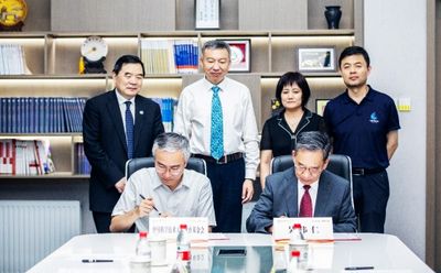 在舒歌群、包信和、唐玉华、张哲的见证下,薛天代表教育基金会与吴伟仁院士签署捐赠协议(如图)。