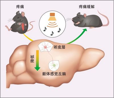 “简单来说,低强度的声音通过抑制听皮层神经元的投射,进一步抑制了大脑中负责‘产生痛感’区域的活跃度,使小鼠的痛感减轻。”周文杰说,小鼠是如此,但人脑的机制要复杂得多,声音对人类疼痛的缓解作用值得进一步深入研究。