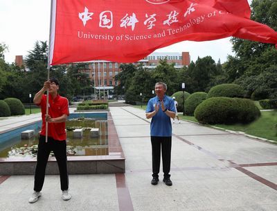 本报讯 7月14日上午,安徽省第十五届运动会(高校部)中国科大体育代表团出征授旗仪式在郭沫若广场举行。校党委书记、本科生院党工委第一书记舒歌群,校党委常委、副校长、本科生院党工委书记、副院长周丛照出席仪式,为即将出征的同学们加油鼓劲。体育教学中心全体教师和代表团同学参加活动。周丛照主持仪式,舒歌群为代表团授旗。