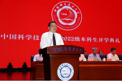 同学们,大学是人生发展的黄金期。你们在“读好书,来科大”的感召下,选择了中国科大,也就选择了不一样的人生。中国科大是一所为“两弹一星”事业而创办的大学,这是一所值得敬重的大学。学校始终秉承“创寰宇学府、育天下英才”的理念,坚持“红专并进,理实交融”,培养了大批德才兼备的优秀人才,取得了一系列举世瞩目的科研成果,为党和国家事业发展作出了重要贡献,被誉为“科技英才的摇篮,科学创新的重镇”。如今,你们心怀梦想、求学科大,美好的大学书卷在你们面前徐徐展开。在此,我希望你们“来科大,读好书”,用心去读好报国、科学、励志“三本书”,培根铸魂、启智润心,成就更好的自己,在奋斗中创造精彩人生,为祖国和人民贡献青春和力量。