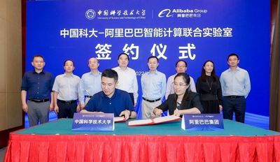 本报讯9月15日,中国科大与阿里巴巴集团正式签署协议,共建智能计算联合实验室。中国科大长包信和院士,副校长吴枫,阿里巴巴集团资深副总裁、达摩院副院长周靖人,阿里巴巴集团副总裁、城市大脑负责人叶杰平,阿里云副总裁、达摩院秘书长刘湘雯,以及学校相关部门负责同志参加签约揭牌仪式。