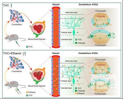 精神活性物质如酒精和大麻,被广泛报道通过靶向中枢神经系统导致运动失调。大量国际研究报道,酒精和大麻经常会被同时使用,导致更加严重的运动障碍。虽然酒精和大麻的联合使用引起的毒性强化已引起社会广泛关注,但这种协同强化的神经机制仍不清楚。