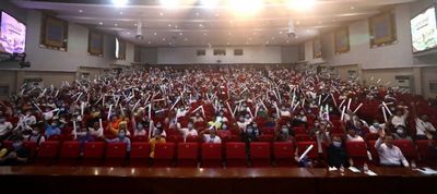 本报讯 9月10日晚,中国科大2022年“师恩不忘,采芹未央”迎新晚会在东区大礼堂举办。正值中秋佳节与教师节,校党委副书记傅尧,校团委书记杨晓果、副书记赵林,相关部门老师和部分辅导员、班主任来到现场,与800余名新生欢聚一堂,共度美好夜晚。