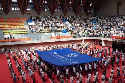 本报讯 9月17日,中国科大2022级研究生开学典礼暨入学教育在高新校区体育馆举行。校领导舒歌群、包信和、杜江峰、吴枫、邓建松,国家同步辐射实验室主任封东来院士,校友代表、欧普康视科技股份有限公司创始人陶悦群先生,相关学院负责人出席开学典礼并在主席台就座。机关有关部门负责人和全体新生参加开学典礼。 副校长杨金龙主持仪式。