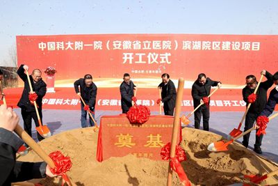 本报讯 1月18日,中国科大附一院(安徽省立医院)滨湖院区建设项目开工仪式举行。中国科大党委常委、副校长傅尧,附一院党委书记刘连新、执行院长严光,安徽省卫生健康委一级巡视员董明培,省财政厅经济建设处、省发改委、省委保健办、包河区人民政府相关负责人,以及项目监理单位、合肥康达工程咨询有限责任公司,项目施工单位、中建四局六公司合安徽分公司等单位负责人出席开工仪式。