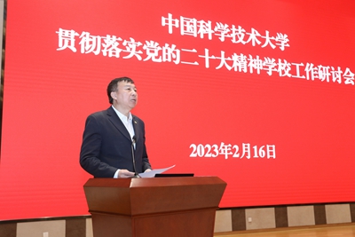 舒歌群在总结讲话时指出,学习宣传贯彻党的二十大精神是当前和今后一个时期的首要政治任务,全校上下要在全面学习上下功夫,坚持读原文、悟原理,同时把学习报告同学习大会系列讲话和相关文件结合起来,同学习党的十八大报告、十九大报告精神结合起来,完整、准确、全面领会党的二十大精神的内涵;要在全面把握上下功夫,不断提高政治站位,紧密结合学校实际工作和面临的问题、挑战,深刻理解党的二十大对教育、科技、人才所提出的要求,牢记作为高水平研究型大学、国家战略科技力量肩上所担负的使命和责任,围绕国家急需人才和高水平科技自立自强,深入思考、主动谋划教育、科技、人才“三位一体”发展;要在全面落实上下功夫,在全面贯彻落实党的二十大精神的开局之年,规划部署好学校新的一年党委、行政工作,激发党员干部、教职员工的工作干劲和热情,细化目标任务,有针对性地拿出落实方案,制定明确的时间表、施工图,扎扎实实向前推进。舒歌群强调,在开学之际要严格落实新冠病毒感染“乙类乙管”,严密关注疫情发展,积极稳妥做好学校的各项安全稳定工作。 (党委宣传部 桂运安)