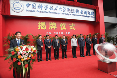 本报讯 10月24日上午,中国科学技术大学先进技术研究院揭牌仪式在高新区隆重举行。安徽省省长李斌,中国科学院副院长阴和俊,安徽省委常委、常务副省长詹夏来,省委常委、合肥市委书记吴存荣,副省长倪发科、谢广祥,中国科大党委书记许武、校长侯建国,省政府秘书长韩先聪等出席揭牌仪式。