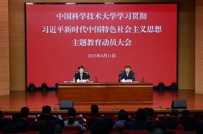 本报讯 4月11日,中国科大召开学习贯彻习近平新时代中国特色社会主义思想主题教育动员大会。校党委书记舒歌群主持大会,并做动员讲话。中央第54指导组组长、中国人民大学原党委书记靳诺作指导讲话。