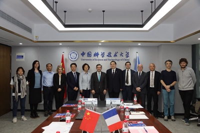 包信和首先对王度总领事一行的来访表示欢迎。他指出,中国科大长期以来高度重视与法国的交流合作,与众多法国院校、科研机构保持着友好的合作关系。2019年,在法国驻上海总领事馆的支持下,学校正式启动“中法数学英才班”。三年多来,中法班教学成果显著,多名学子前往巴黎高等师范学院、巴黎理工学院、巴黎萨克雷大学等数学专业排名世界前茅的学校继续深造,成为学校人才培养的一块亮眼招牌。2022年底,学校在中法班基础上,进一步整合对法合作资源,成立中国科大中法数学中心,为进一步推动中法战略合作乃至中欧合作、为培养基础学科领域的领军人才源源不断的贡献科大智慧和力量。包信和谈到,总领事此次来访正值马克龙总统刚结束访华之际,这对持续加强双方友好互信、全面深度合作有着重要意义,希望未来双方继续增进交流共识,在物理、医学等多学科领域展开新的合作篇章。
