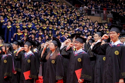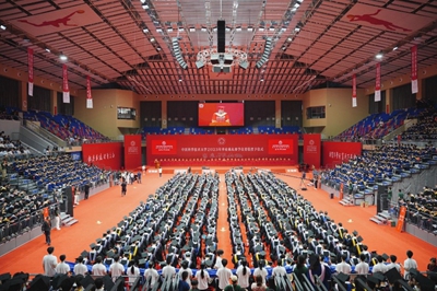 仪式上,校党委书记舒歌群带领毕业生庄严宣誓:“感恩父母养育,感谢导师教诲,不忘母校培养。我们坚守母校信念,热爱科学、崇尚真理;我们传承母校精神,科教报国、追求卓越。我们用激情和智慧建设祖国,用责任和行动回馈社会,用成就和硕果回报母校。”