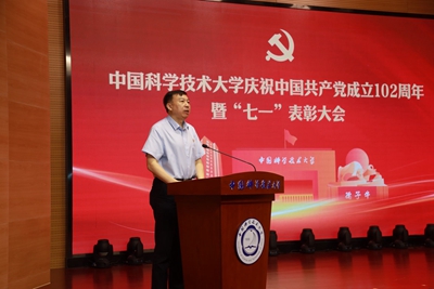 舒歌群代表学校党委,向获得“光荣在党50年”纪念章的老党员们致以了崇高的敬意,向受表彰的优秀共产党员、优秀党务工作者和先进基层党组织表示热烈的祝贺,并对全体党员提出了期望。全校党员要永远恪守入党时许下的誓言,把初心和使命铭记于心、见之于行,学习老党员身上的高尚情怀、奋斗品质、敬业态度、斗争精神,勇于挑重担子、啃硬骨头,以忠诚干净担当的实际行动,在建设中国特色、科大风格的世界一流大学中奋勇争先、建功立业。