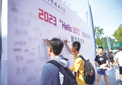本报讯 红专并进喜迎八方学子,理实交融培育天下英才。8月25日,中国科大迎来了2023级本科新生。“热烈欢迎2023级新同学”“接过你的行囊、梦想从这里启航”“创寰宇学府、育天下英才”“牢记习近平总书记嘱托、建设中国特色世界一流大学”“潜心立德树人、执着攻关创新”……校园里,一条条热情洋溢、振奋人心的条幅,迎接着1900余名本科新生的到来。