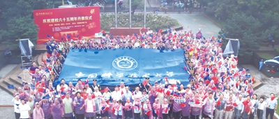 本报讯 9月20日清晨,为庆祝我校建校65周年,传承弘扬“勤奋学习、红专并进”的优良校风,学校在东区郭沫若广场举办庆祝建校65周年升旗仪式。校党委副书记邓建松,部分院系新生团支部代表和自发前来观礼的广大师生校友共同参加仪式。