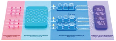 中国科大团队在理论上首次发展包含光子全同性的新理论模型,实现了更精确的理论与实验的吻合;同时,发展了完备的贝叶斯验证和关联函数验证,全面排除了所有已知的经典仿冒算法,为量子计算优越性提供了进一步数据支撑。在技术上,研制了基于光纤时间延迟环的超导纳米线探测器,把多光子态分束到不同空间模式并通过延时把空间转化为时间,实现了准光子数可分辨的探测系统。这一系列创新使得研究团队首次实现了对255个光子的操纵能力,极大地提升了光量子计算的复杂度,处理高斯玻色取样的速度比“九章二号”提升了一百万倍。在激烈的国际竞争角逐中,“九章三号”的实现进一步巩固了我国在光量子计算领域的国际领先地位。