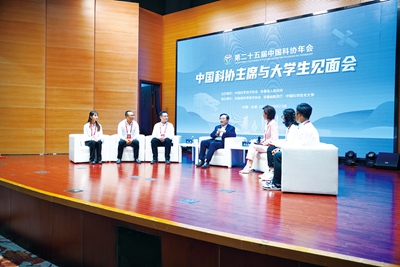 作为第二十五届中国科协年会的重点活动之一,本次见面会以“新时代·新青年·新使命”为主题,万钢与大学生们围绕中国科学家如何应对当前全球性挑战、基础科学专业学生如何在中国科技发展中贡献力量、如何理解科学普及与科技创新的关系、如何应对科研实验中的不可控因素等问题进行了亲切交流,与大家分享自身在成长、求学、工作等方面的人生经历,给予同学们殷切期待、悉心指导与温暖关怀。