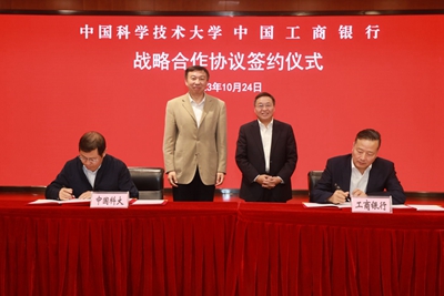 本报讯 10月24日,中国科大与中国工商银行全面战略合作协议签署仪式在东区师生活动中心五楼国际会议厅举行。校党委书记舒歌群,中国工商银行党委书记、董事长陈四清,中国工商银行党委委员、副行长张文武出席签约仪式,校党委副书记邓建松出席并主持活动。