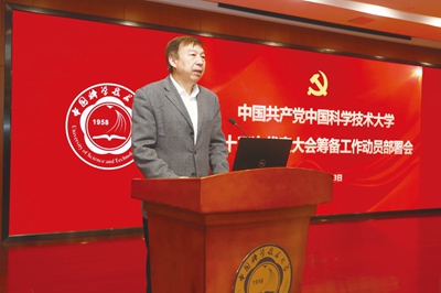 蒋一首先代表校党委宣读中共安徽省委教育工委关于同意召开学校第十三次党代会的批复文件。经校党委研究,报请中组部、安徽省委同意并报告中国科学院党组,学校将于2024年1月下旬召开第十三次党代会。党委组织部常务副部长申成龙代表党代会筹备工作组介绍党代表和两委委员推选工作的具体要求与时间节点。