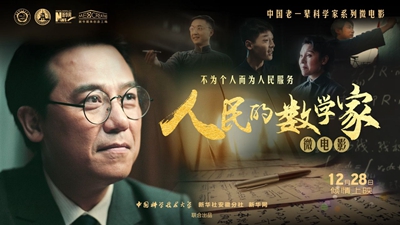 近年来,中国科大传承和弘扬抗大精神、“两弹一星”精神和老一辈科学家精神,自2019年起,联合新华网、新华社安徽分社等拍摄“老一辈科学家精神”系列微电影,先后推出《永怀初心》《月是故乡明》《科学之光》《永恒的东风》《科学的春天》等5部作品。值得一提的是,这5部微电影已在全国科普场馆公益展映。本次首映的《人民的数学家》正是系列微电影中的第6部。