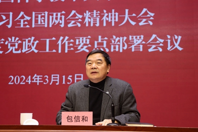 包信和指出,今年是中华人民共和国建立75周年,也是实现“十四五”规划目标任务的关键一年。学校要深入学习贯彻落实全国“两会”精神,牢牢把握高质量发展这个首要任务,聚焦“潜心立德树人,执着攻关创新”两大核心任务,坚持教育、科技、人才一体统筹推进,强化国家战略科技力量的责任担当,充分依托中国科学院发挥“全院办校、所系结合”特色优势,加强校地合作,积极融入长三角一体化区域发展和国家科教融合发展战略,因地制宜发展新质生产力,为加快推进教育强国、科技强国、人才强国建设贡献中国科大力量。
