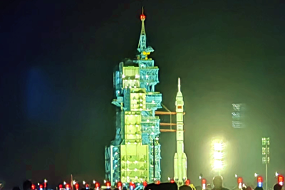 凌晨3时,欢送仪式结束后,师生们来到距离发射现场仅1.5公里的观测场地。“我们都想近一点,再近一点!但这已经是能观测的最近距离,再靠近就危险了。”不远处的发射塔架上,长征二号F遥十九运载火箭静静矗立,等待着重要时刻的到来。