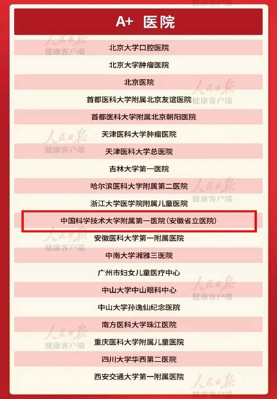 本报讯 11月16日下午,2023年度“复旦版中国医院排行榜”在上海揭晓,在中国医院综合排行榜中,中国科学技术大学附属第一医院(以下简称“附一院”)连续七年进入全国百强,获评A+等级。
