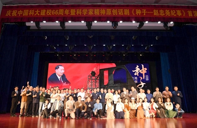 《种子——赵忠尧纪事》由档案文博院、本科生院、团委统筹推进,安徽省话剧院艺术指导,前期立项、剧本准备历时一年多,今年7月正式建组,展开排练。历经27位参演师生、22位场务同学两个月的认真排练和精心准备,最终于9月20日我校66周年校庆之际在东区大礼堂隆重首演,为全校师生奉上了一场生动的科学家精神主题教育实践。