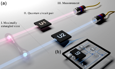 本报讯 近日,中国科大郭光灿院士团队在量子电路等价性实验研究中取得重要进展。该团队李传锋、柳必恒等人与清华大学魏朝晖助理教授合作,实现了基于贝尔非局域性的量子电路等价性检验。相关研究成果发表在《物理评论快报》上。