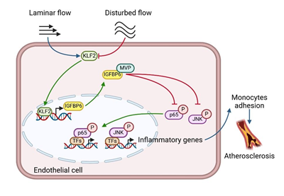综上所述,本研究表明IGFBP6响应血流剪切应力并具有抗内皮炎症和动脉粥样硬化的作用,有希望成为治疗动脉粥样硬化和泛血管疾病的新靶点。
