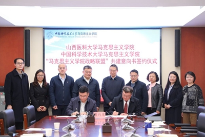 随后,刘立与王绍源代表双方签署了“马克思主义学院战略联盟”共建意向书,在与会领导、教师的共同见证下,中国科学技术大学马克思主义学院与山西医科大学马克思主义学院正式启动共建工作。与会领导、教师代表就学科建设、人才引育、实践教学等工作进行了深入交流。