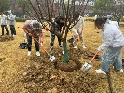 本报讯 雨润新绿,青春同行。3月11日和12日,我校高新园区举行植树主题团日活动。高新园区各院系200余名青年学生分批分区开展植树活动,高新园区管办、图书馆、高新园区团工委等部门老师共同参与本次植树活动。
