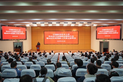 本报讯 3月18日下午,中国科学技术大学传达学习全国两会精神大会暨2025年度党政工作要点部署会在东区理化大楼东三报告厅举行。校党委书记舒歌群等在校校领导,两院院士,校党委、纪委委员,全体中层干部,各民主党派负责人,离退休党员干部代表,教师代表,学生代表参加会议。会议由校党委常务副书记蒋一主持。