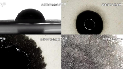 央视新闻播出的墨滴在生宣和熟宣上的扩散性差异、表面张力差异实验