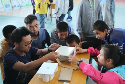 中国科大研支团第18届支教队员在宁夏海原县体育馆开展科普展。
