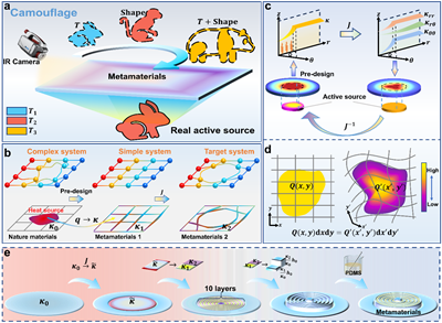 本报讯 近日,中国科大工程科学学院热科学和能源工程系何立群课题组在热超材料设计方法上,首次将热源纳入温度坐标变换框架内,根据功率分布以及目标温度场直接确定区域内材料所需的导热系数张量分布,并提出了实现目标温度场的等价常规材料拓扑结构方法。相关研究成果发表在《先进科学》上。