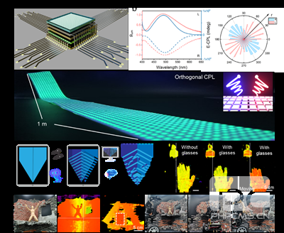 目前的手性光源在通电显示过程中难以获得足够的电致发光不对称性。如何通过低成本、简单工艺实现具有高感知体验的3D显示系统,并进一步打造独特的深度信息交互核心技术是当前迫在眉睫的任务。圆偏振光相较于非偏振光,可显著提升信息密度与交互维度。基于圆偏振光的3D显示技术,可大幅减少视觉疲劳并达到更大观察范围内的高质量立体成像。相较于使用物理光学方法产生圆偏振光,具有圆偏振发光(CPL)特性的手性发光材料在可加工性和器件集成方面展现出独特优势。目前,基于CPL的静态3D成像技术已取得进展,但如何通过数字信号输入对发光单元进行实时动态调控(即:实现基于CPL的电控3D显示),仍难以实现。