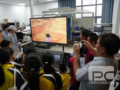 中国科大志愿者在向孩子们展示激光雕刻技术