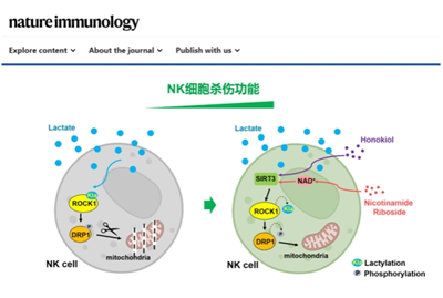 本报讯 中国科大生命科学与医学部、免疫应答与免疫治疗全国重点实验室王毅课题组、魏海明课题组,联合复旦大学人类表型组研究院丁琛课题组,于6月10日在《自然·免疫学》上在线发表了题为“Targeting lactylation reinforces NK cell cytotoxicity within the tumor microenvironment”的研究论文。该研究首次揭示了肿瘤微环境中乳酸通过在自然杀伤(NK)细胞内形成乳酸化修饰,从而抑制其抗肿瘤功能的新机制。此外,该研究从调控乳酸化修饰的角度出发,为突破肿瘤微环境中高乳酸屏障对NK细胞功能的限制提供了新的干预靶点,并提出了基于小分子化合物的干预策略。