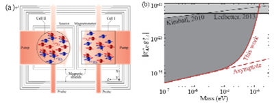 图. (a)自旋量子测量传感器与自旋源;(b)新玻色子的实验界限。