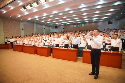 本报讯 为了热烈庆祝中国共产党成立104周年,扎实推进深入贯彻中央八项规定精神学习教育,7月1日下午,校党委在理化大楼东三报告厅召开庆祝中国共产党成立104周年暨“七一”表彰大会。校党委书记舒歌群出席大会并讲话,在校党员校领导、党员中层领导干部、基层党组织党员代表、获得“光荣在党50年”纪念章的老党员代表、获得“两优一先”表彰的党员代表参加大会。校党委常委、党委组织部部长申成龙主持大会。