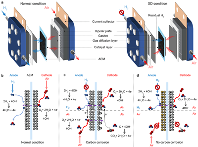 该工作开发了一种高效的非贵金属阳极催化剂,通过对HOR和ORR反应的“选择性催化”,为解决燃料电池启停过程中的关键RCD问题提供了一种简便有效的方案,无需复杂的系统改造即可显著提升电池耐久性。