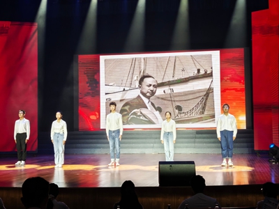 分享会上,我校“数启九章,星耀华夏”中国科大数学学院“两弹一星”精神宣讲团成员刘浩东以《传承‘两弹一星’精神,落笔科大青春注脚》为题,汇报我校近年来在“两弹一星”精神宣讲与实践育人方面取得的阶段成果与实践经验,引发与会师生的广泛共鸣和热烈讨论。在当晚举行的联合宣讲展演中,校学生主持人俱乐部的5名学生演出情景剧《家国情怀》,生动再现钱学森、黄纬禄、孙家栋等“两弹一星”元勋投身国防事业的感人事迹,诠释了老一辈科学家将个人理想融入国家需要、以智慧与奉献铸就国之重器的崇高精神品格。