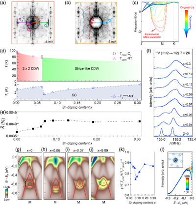 图:锡掺杂CsV3Sb5的相图和新型电荷条纹序的谱学证据