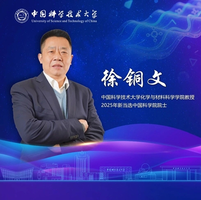 11月21日,中国科学院公布2025年新增选院士名单,中国科学技术大学化学与材料科学学院教授徐铜文新当选为中国科学院院士。海报制作:周欣宇、代蕊、郑鸿洁